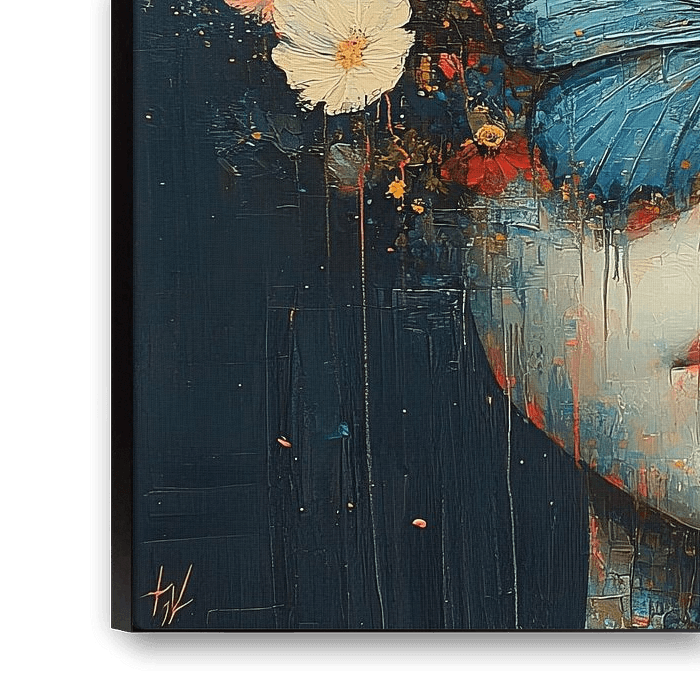 Details: women's painting, butterflies, flowers, face, art, portrait, figurative, modern, nature