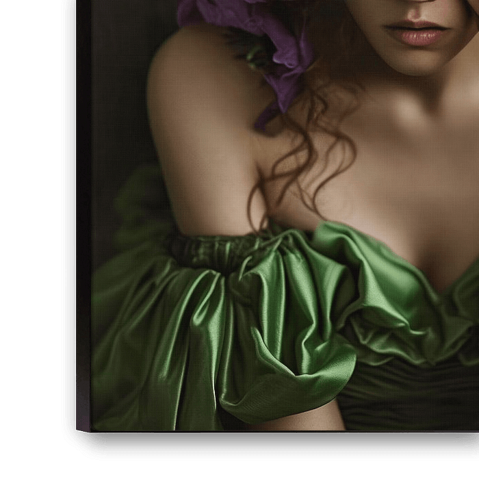 Buy this portrait Woman with a purple crown of flowers by Carla van Zomeren on canvas, ArtFrame, poster and wallpaper, printed on demand in high quality.