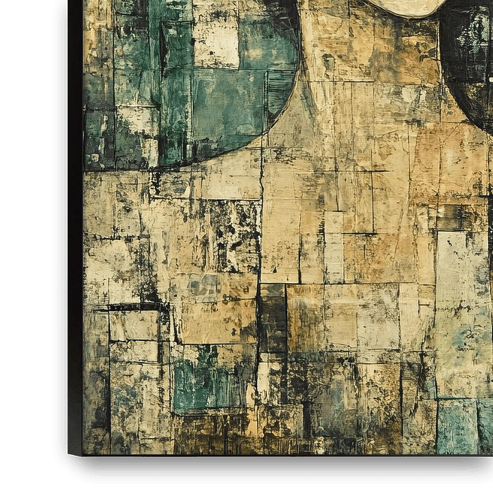Details: painting of a woman, portrait painting, abstract painting, modern, mosaic, subdued, serene, brown,…