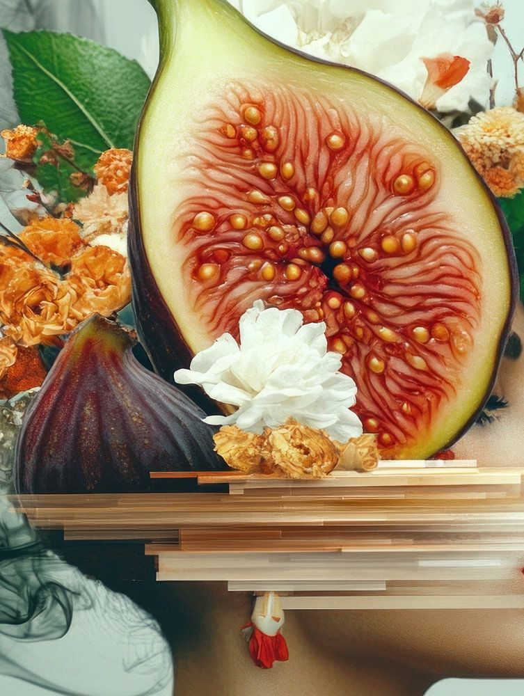 This colourful and modern artwork features expressive shapes and bold colour contrasts.The collage work of the hyper-realistic woman with smoke and flowers and figs gives the piece a modern twist. With a palette of pink pastel hues, it brings energy and visual appeal to any space. The woman with flowers gives it a contemporary look that fits well in modern interiors.