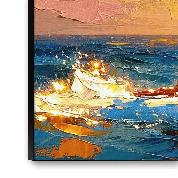 The sky glows in an explosion of intense red, orange and saffron colours, as if the tropical sun is bathing the world in flaming light before gently sinking into the horizon. Its glowing reflections dance on the surface of the water and lend the scenery an almost magical depth. Everything seems enraptured, almost timeless - a moment of pure harmony between man and nature, captured in the warmth of the tropical evening.