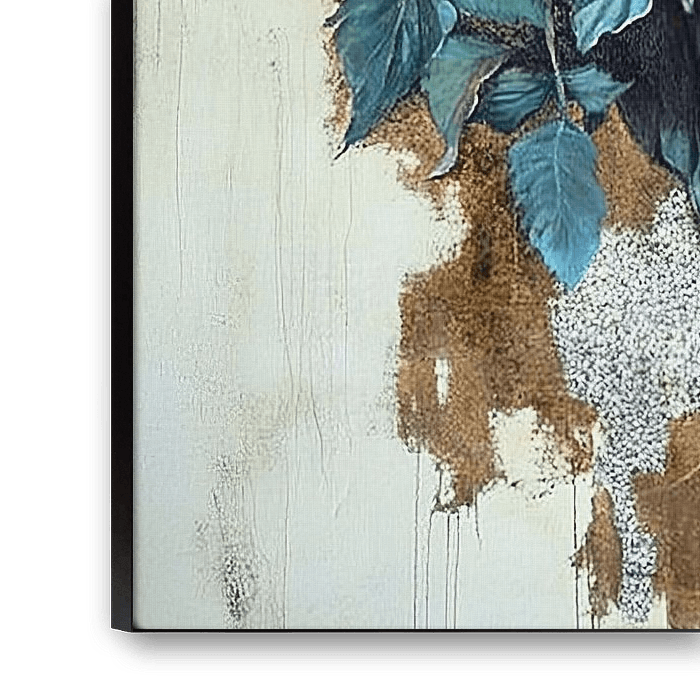 Women's Flowers | Gentle Gaze Among Petals - This women's painting shows a serene female figure wearing a rich floral wreath, presented in an artistic palette of brown and earth tones against a dark textured background.