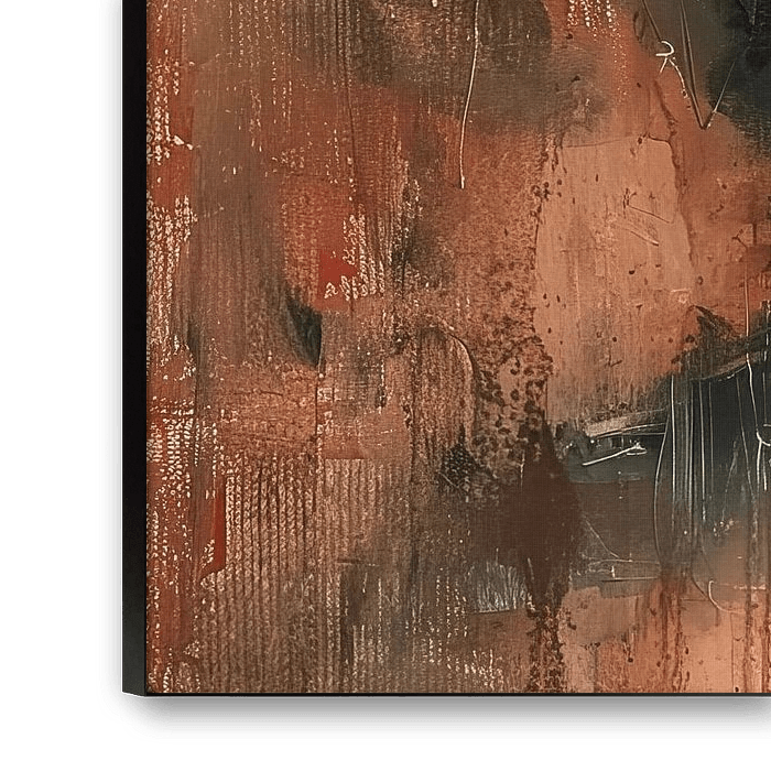 Women Painting Art | Silent Contemplations in Colour - This women painting depicts an abstract portrait of a woman, contained in a turbulent and emotional colour palette. The woman's face, though subtle and partially hidden behind abstraction, exudes a deep and contemplative expression. Rich shades of orange and brown, mixed with black and white splashes and streaks, dominate the painting, creating an impressive contrast that gives depth and texture to the artwork. The paint has been applied thickly in some places, giving a three-dimensional effect. The abstract use of colour and shape around the face creates the impression of movement and transformation, as if the woman's emotions and thoughts were manifesting in her physical surroundings.