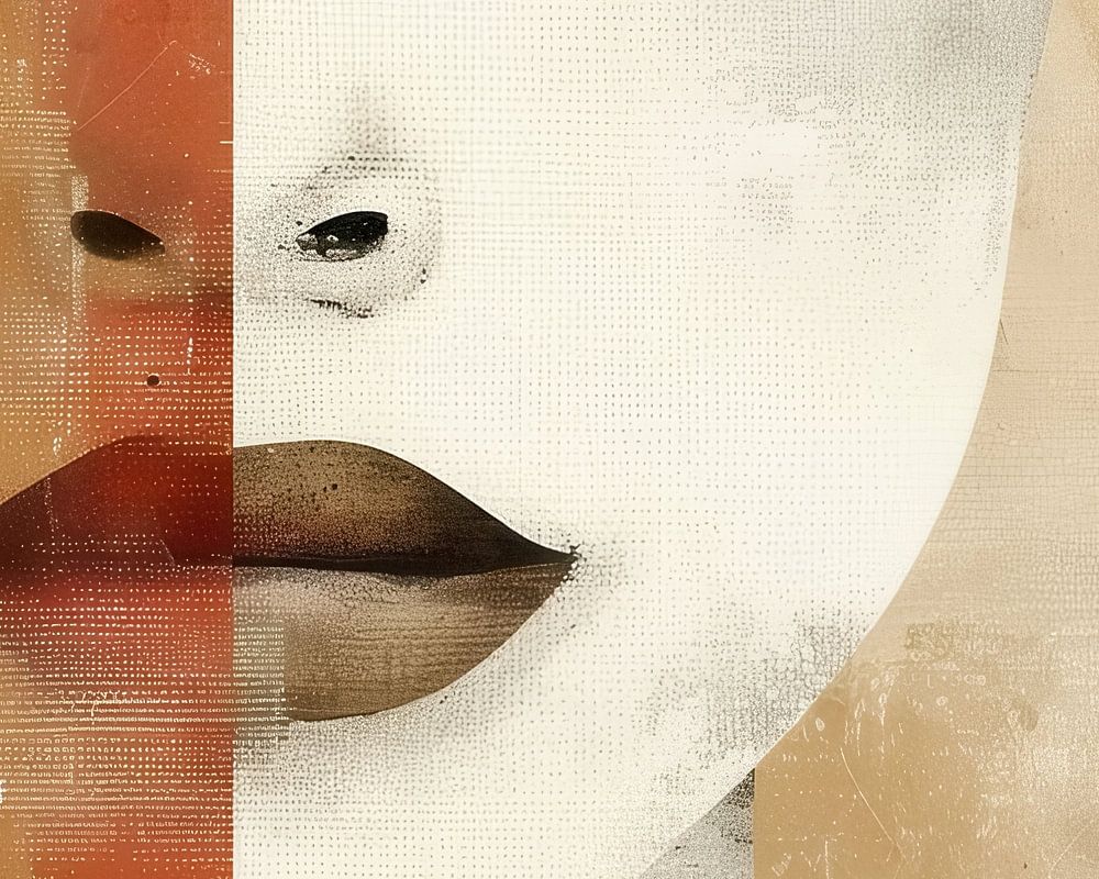 Details: woman, abstract, face, asymmetry, colour block, modern, art, portrait, minimalist
