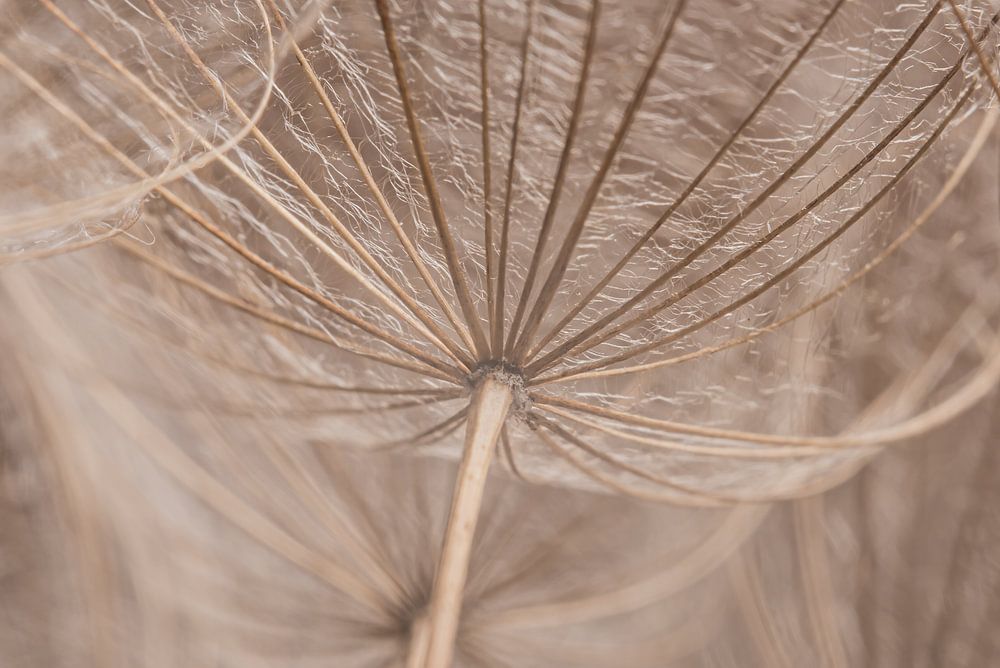 "Wood colored fluff of a morning star" is a macro photo the fluff of a morning star photographed from an angle below. (This edited) photo has soft wood colored tones / pastel colors / white / gold color / champagne color/ brown / beige tones.