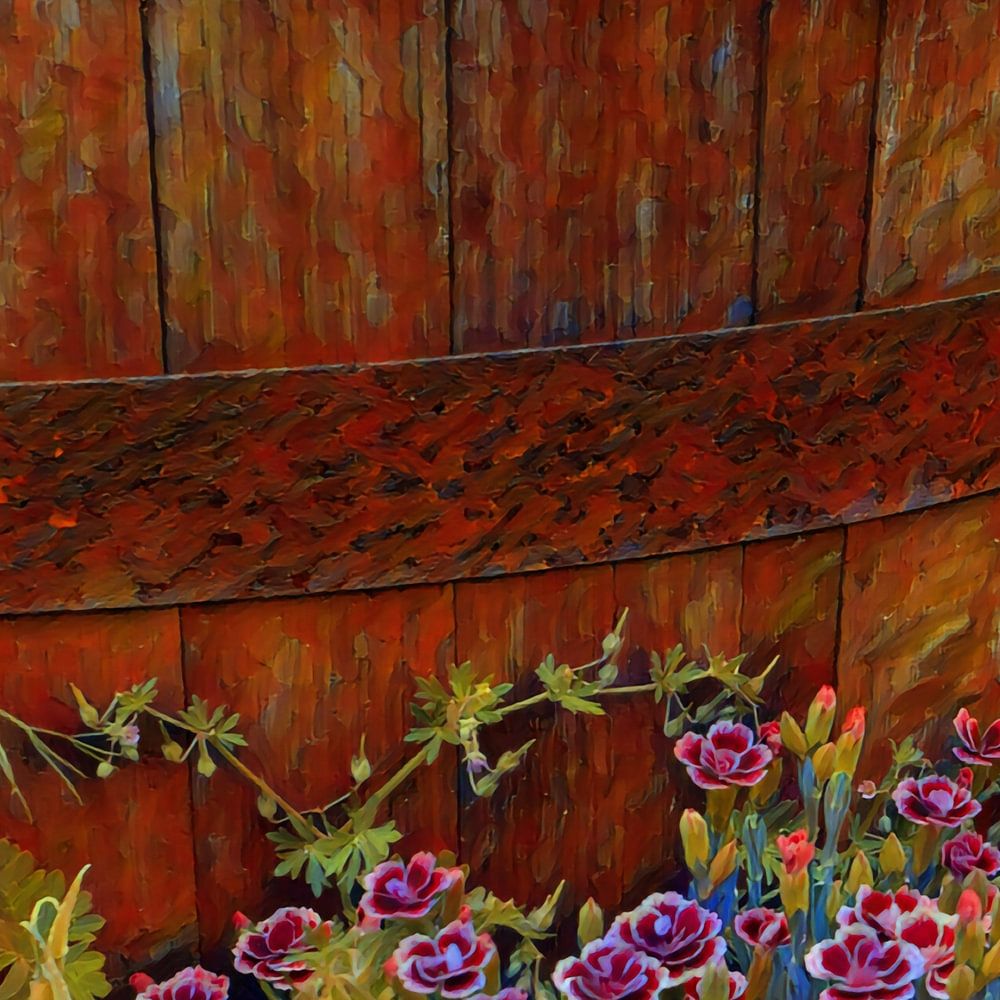 Buy this flower art Wooden barrel full of flowers by Patricia Piotrak on canvas, ArtFrame, poster and wallpaper, printed on demand in high quality.