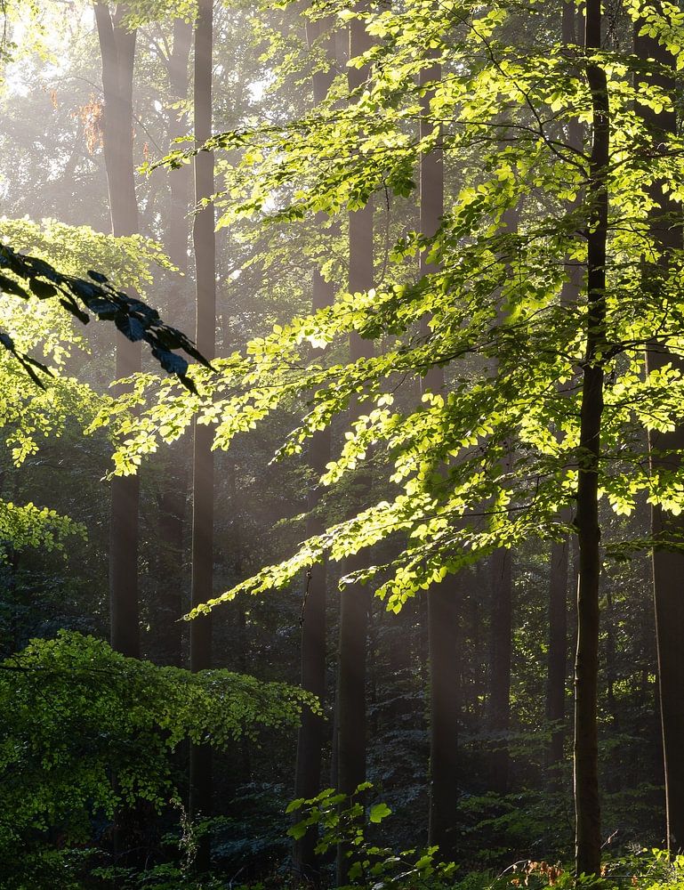 A morning walk in the woods. I was surprised by the light that suddenly penetrated through the canopies of the trees.