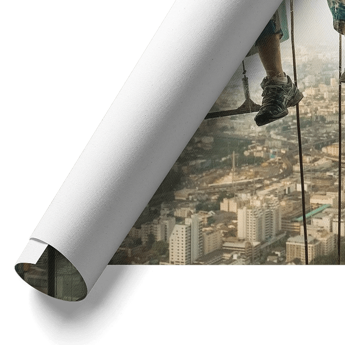 About ‘Working at height, window washers hang from a skyscraper’ by Nic Limper