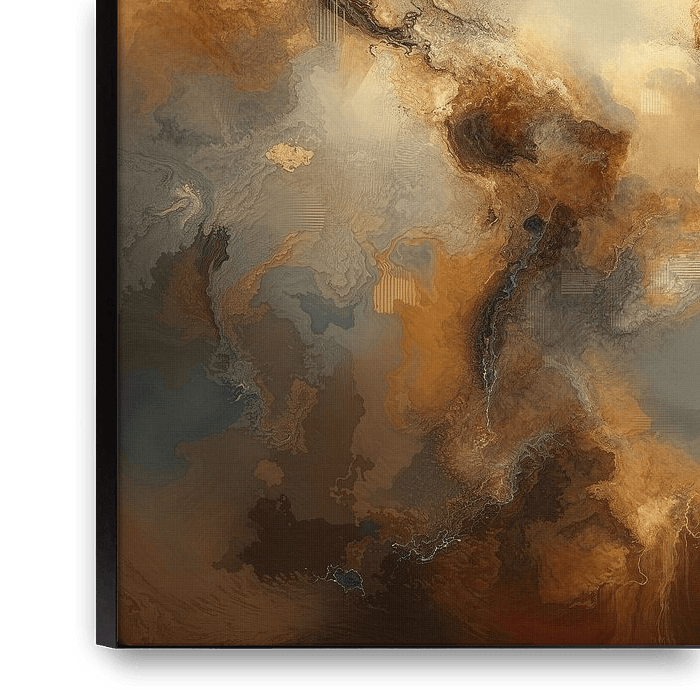 Infused with gold and brown tones, this abstract work offers an artistic interpretation of the world map. The earthy brown tones add warmth and create connection. The world map, integrated in an abstract manner, invites contemplation on the complexity and coherence of our world. Depth and texture enrich the artwork, inviting the viewer…