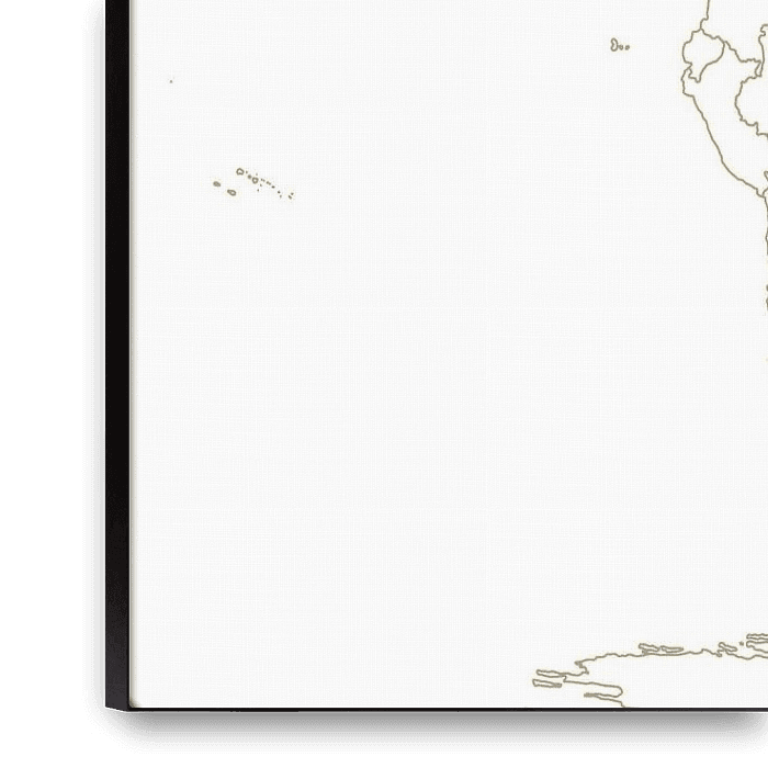 This world map is a stylish addition to any living room. The countries are separated by thin gold lines, adding a subtle touch. It is also perfect to mark your visited countries on. This map looks great on a white wall and arouses curiosity in everyone who sees it. Show your love of travel and add a beautiful work of art to your living…