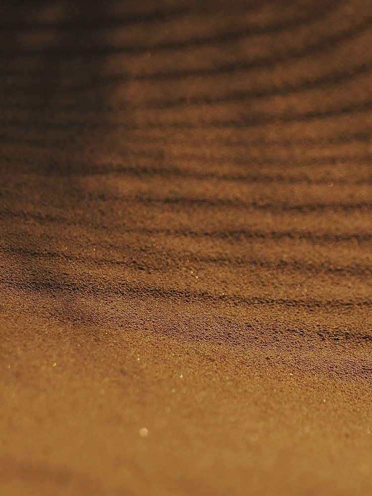 Just before sunset, the warm sunlight creates a beautiful abstract image of the ridges in the sand.