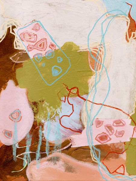 The title means ‘yuppie chocolate’ in Japanese. It is a colourful, modern, abstract painting featuring both familiar and less recognisable shapes. An eye-catcher that invites you to lose yourself in daydreams and create your own story from it. My work is often created using acrylic paint, acrylic markers and oil pastels. Sometimes I use…