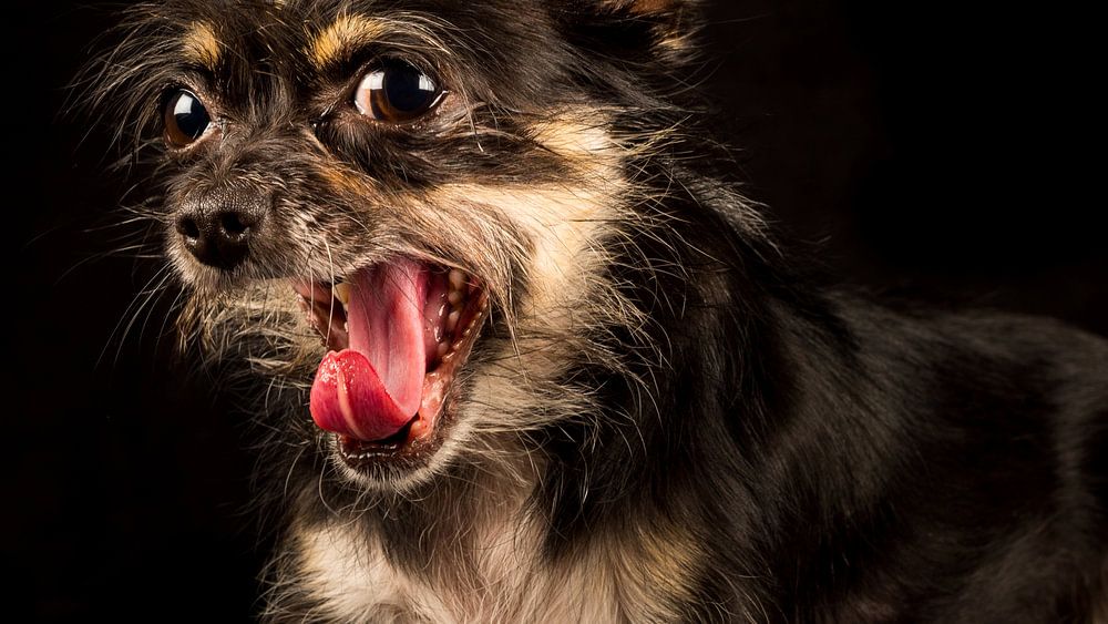 Buy the photo Yawning mongrel dog with furtive look by Günter Albers on canvas, ArtFrame, poster and wallpaper, printed on demand in high quality.