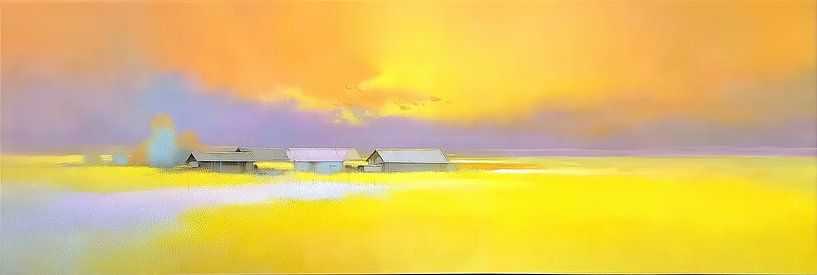 Buy this landscape artwork Yellow Meadow | Late Summer Glow by Art Whims on canvas, ArtFrame, poster and wallpaper, printed on demand in high quality.