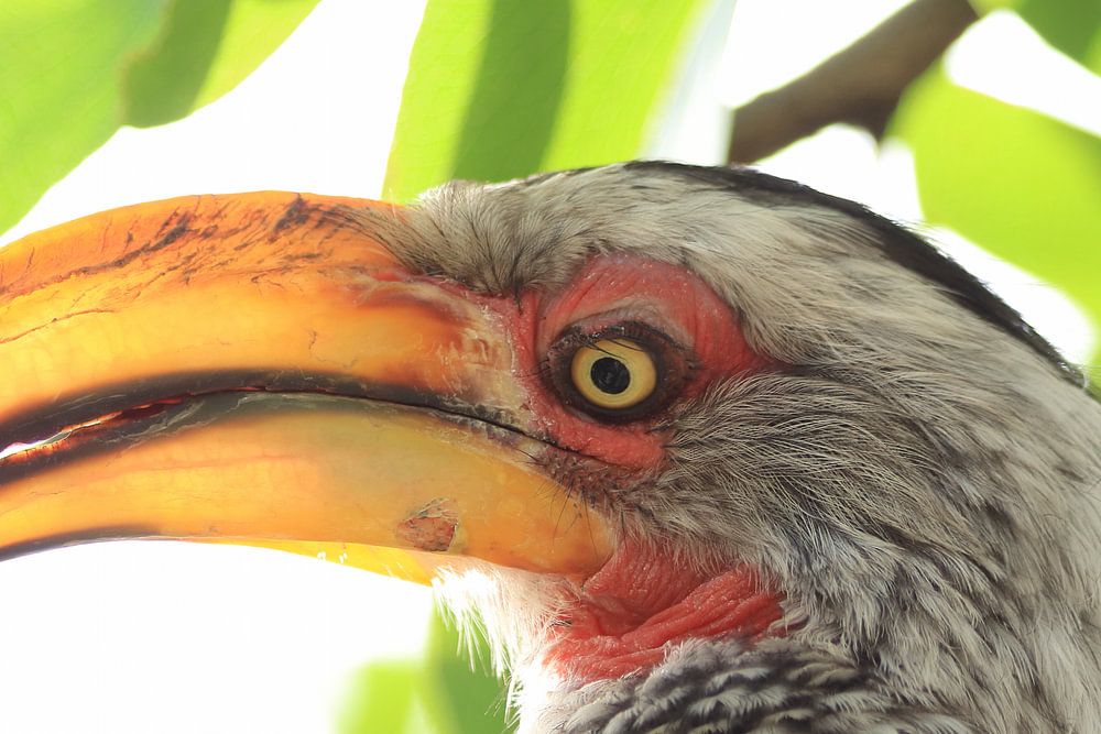A yellow beaked hornbill in the tree in Moremi National Park in Botswana, Africa