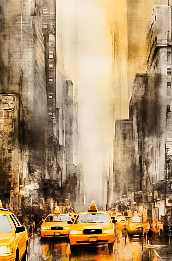 Buy this digital art artwork Yellow cab's of New York City by Thea as a reproduction on canvas, ArtFrame, poster and wallpaper, printed on demand in high quality.