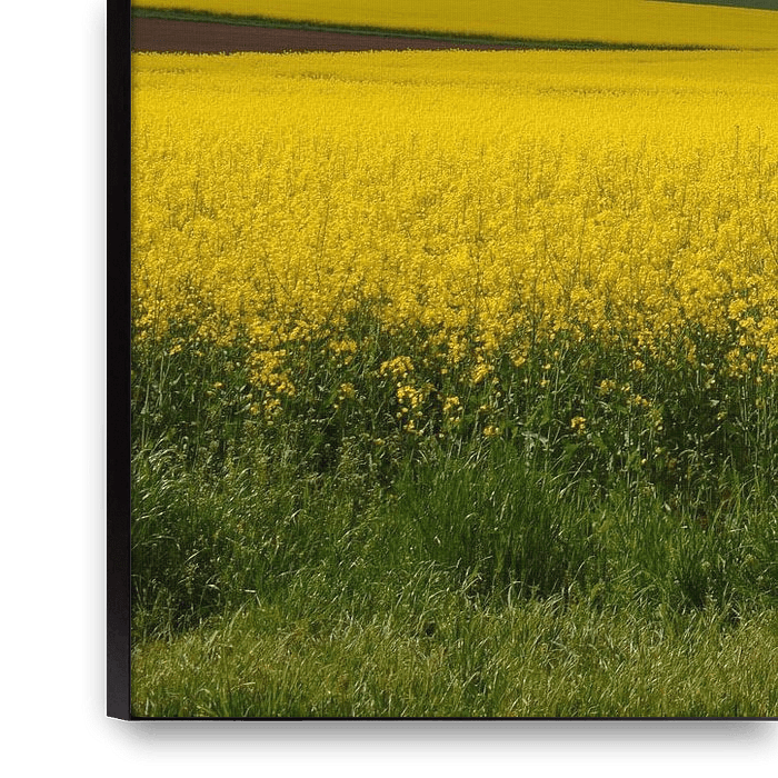 Buy this landscape artwork Yellow rapeseed fields in the German Eifel near Gerolstein by My Footprints on canvas, ArtFrame, poster and wallpaper, printed on demand in high quality.