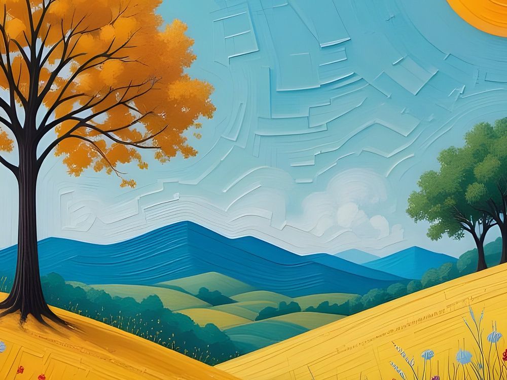 Buy this landscape artwork Yellow tree in the meadow by HorizonArtistry on canvas, ArtFrame, poster and wallpaper, printed on demand in high quality.