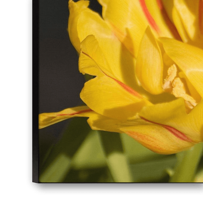 Buy this flower art Yellow tulips against a dark background by Margot van den Berg on canvas, ArtFrame, poster and wallpaper, printed on demand in high quality.