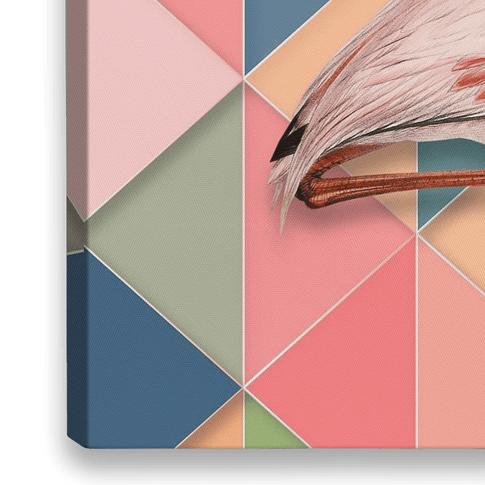 A collage of various images. In pastel shades. With depth effect. Vintage image of a flamingo on a modern, pastel-coloured background.