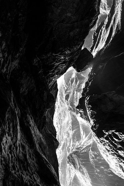 In rainy weather in the Partnachklamm gorge near Garmisch-Partenkirchen.