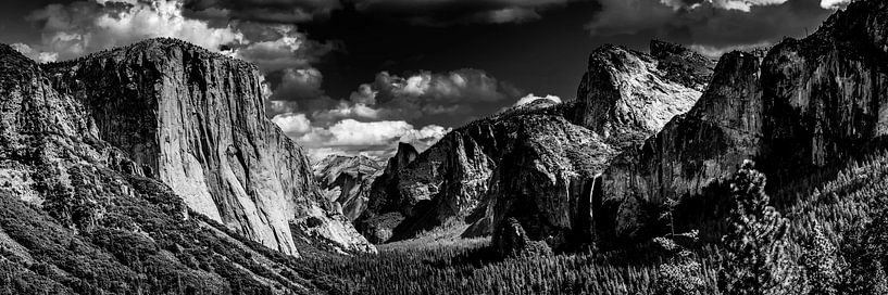 Photo panorama landscape Yosemite valley in Yosemite national park in USA in black and white
