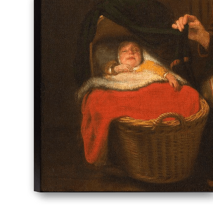 Buy Young Woman at a Cradle, Nicolaes Maes as a reproduction on canvas, ArtFrame, poster and wallpaper, printed on demand in high quality.