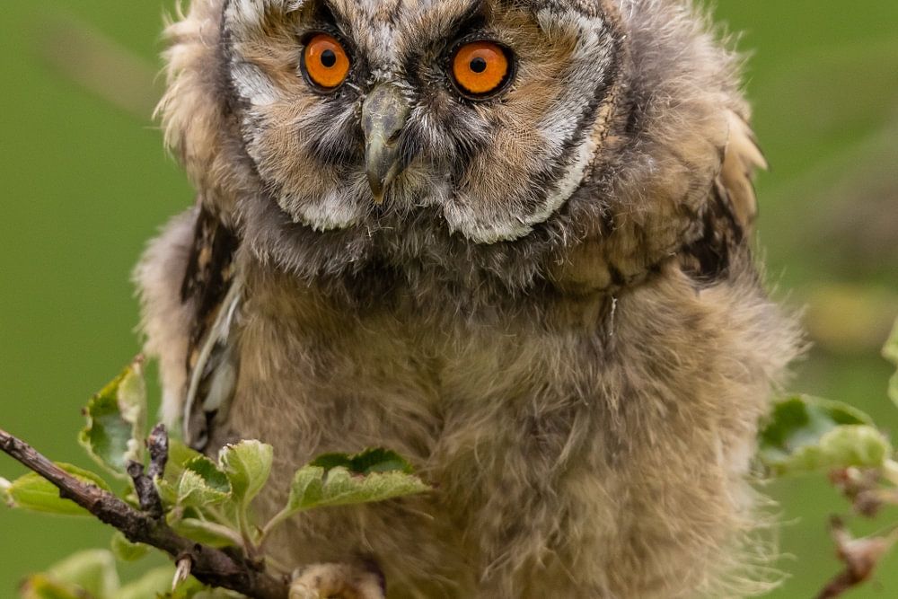 A young eagle owl, also known as a torchbearer. The Eagle Owl is the largest owl species in Western Europe. They are birds of prey and hunt birds and rodents.
