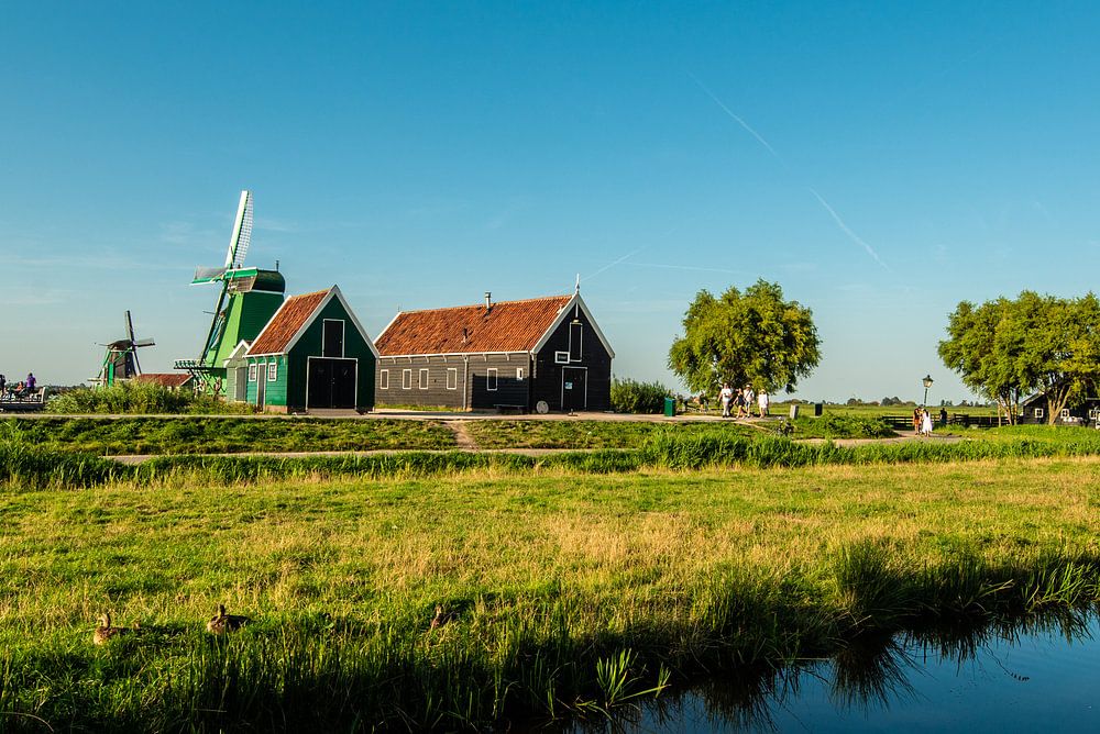 Zaanse Schans is a tourist attraction in Holland with typical Dutch windmills and landscapes.