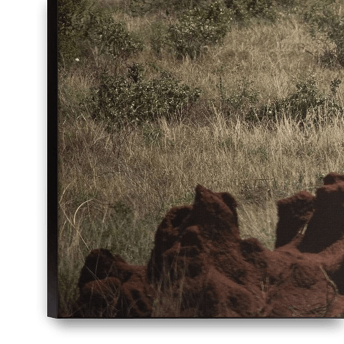 Buy this landscape artwork Zebra in the savannah, landscape shot by Fotos by Jan Wehnert on canvas, ArtFrame, poster and wallpaper, printed on demand in high quality.