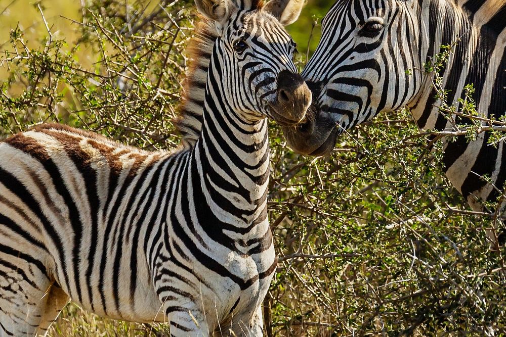 A beautiful interaction between mum zebra and her baby in Kruger National Park, South Africa.