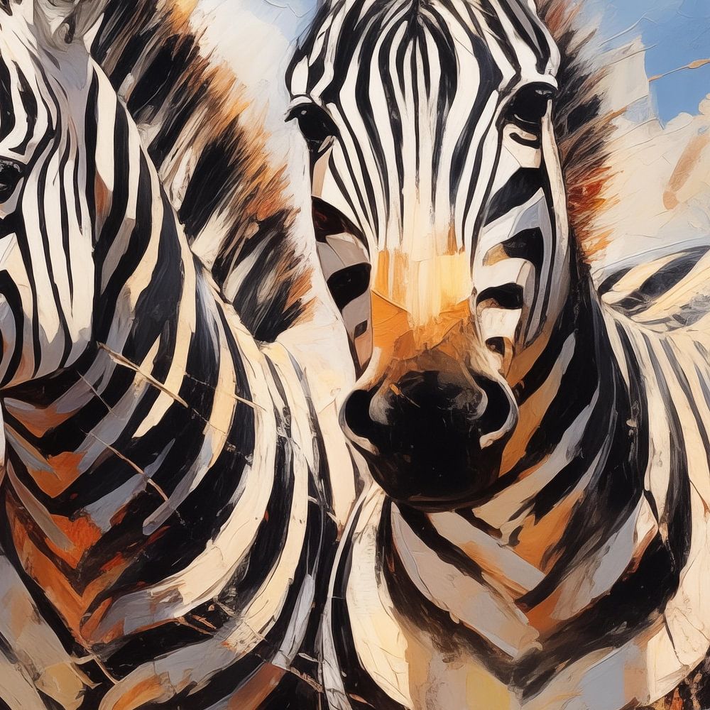 Unique zebra's oil painting with artistic style. With beautiful colour tones and a unique design, this makes a stylish photo print that looks great in any room. 100% unique and original!