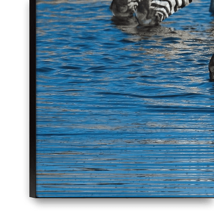 Buy the photo Zebras at the waterhole in Namibia by Roland Brack on canvas, ArtFrame, poster and wallpaper, printed on demand in high quality.