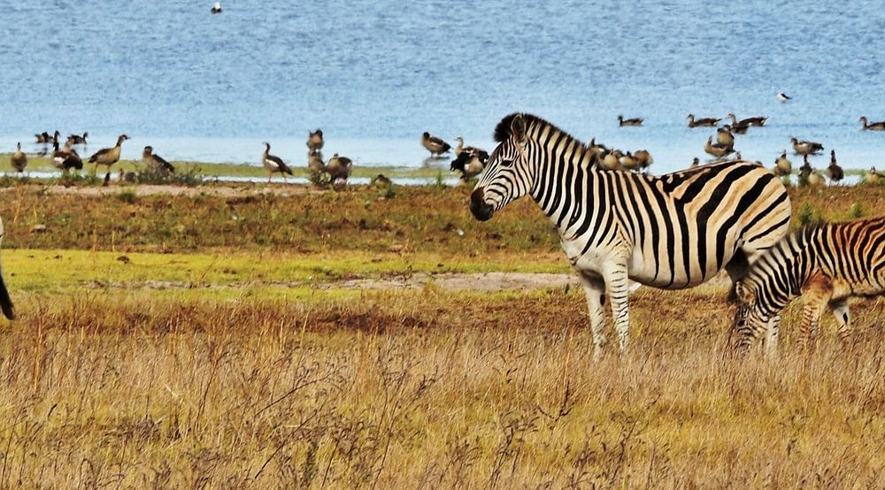 Landscape with zebras grazing