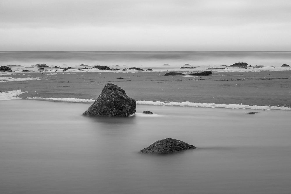Het is een rustige herfstdag als is loop te jutten langs het water. Dreigende wolken een paar keien en de branding trekken mijn aandacht, dus klik met een lange sluitertijd.