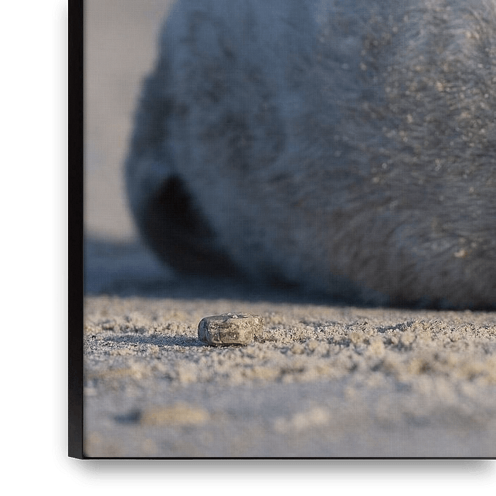 A cute baby seal lies on the beach and holds its face up to the winter sun. It looks content and happy and seems to be simply enjoying the moment. This feeling is also transferred to the viewer.
