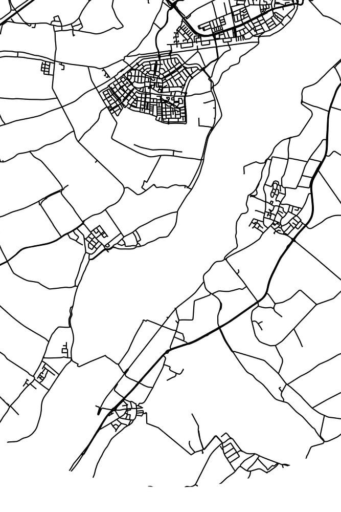 Black and white map, street map or street plan of Zennewijnen. Zennewijnen is located in the Betuwe, in the municipality West Betuwe, province Gelderland. On the city map all public roads in Zennewijnen are included. Furthermore, the map is provided with the coordinates of the center of Zennewijnen.