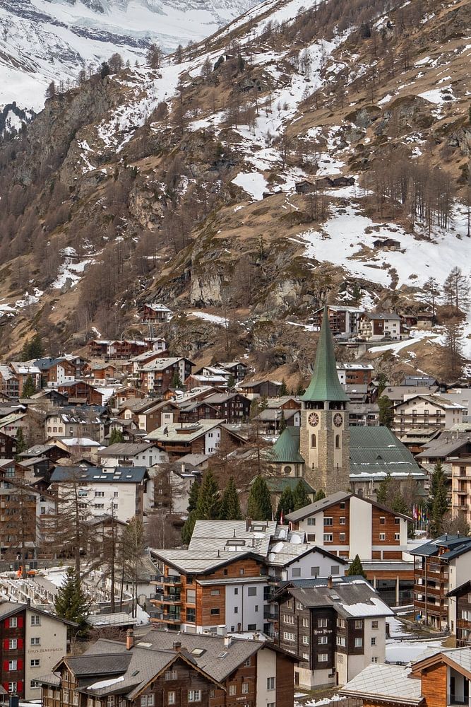 Zermatt in the southern Swiss canton of Valais is a mountain resort popular with skiers, climbers and hikers. The town lies at an altitude of 1,600 m at the foot of the famous pyramid-shaped Matterhorn. Zermatt's main street, Bahnhofstrasse, is home to boutiques, hotels and restaurants as well as a lively après-ski scene.