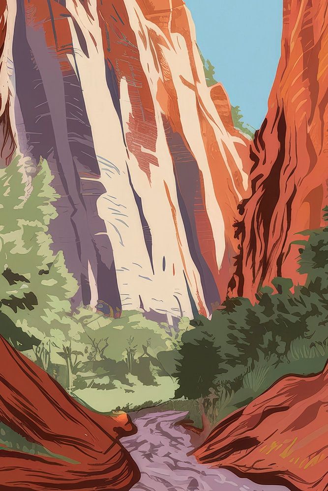 With majestic red rocks shining in radiant light, this scene invites you to explore. The gentle waterways and lush green accents create a calming atmosphere. Ideal for the living room, it adds a sense of adventure and closeness to nature to any room.