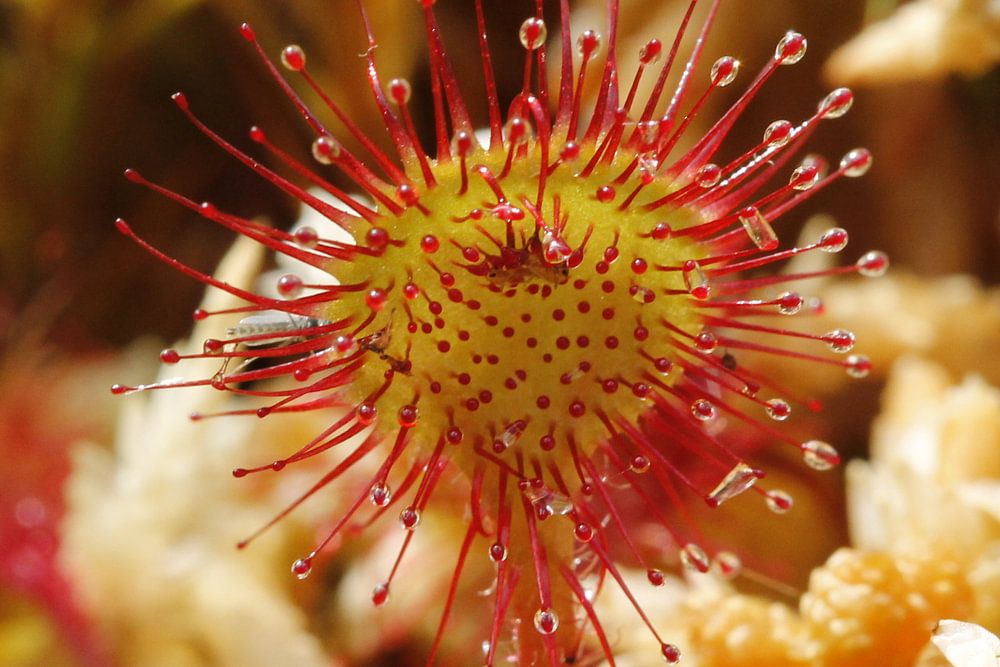 Dit is het vleesetend plantje genaamd Zonnedauw.
