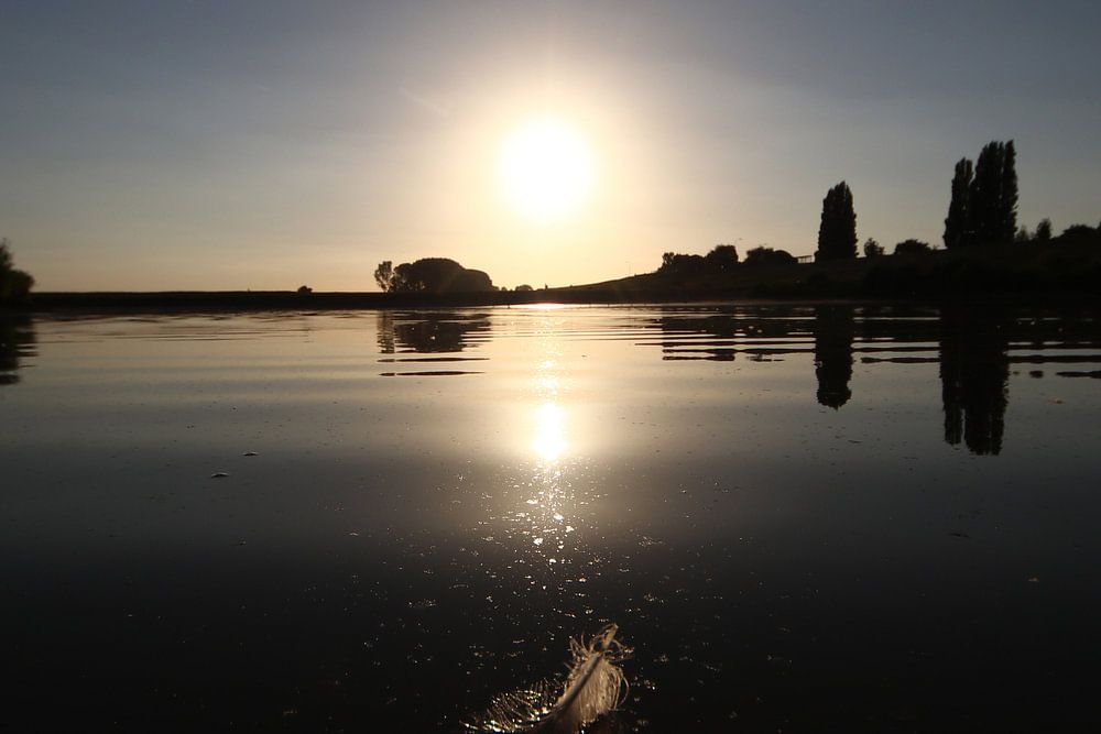 Een veertje in de zon in de wateren van de uiterwaarden.