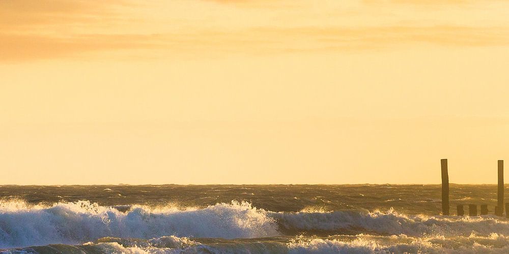 Langs het strand bij Zoutelande op het Zeeuwse eiland Walcheren vind je prachtige rijen strandpalen. Toen ik er was stond er windkracht 6, zodat er hoge golven stukbraken op het strand en met name op de strandpalen. Een machtig gezicht! Tijdens zonsondergang kleurde de lucht ook nog eens mooi, waardoor een prachtig plaatje ontstond.