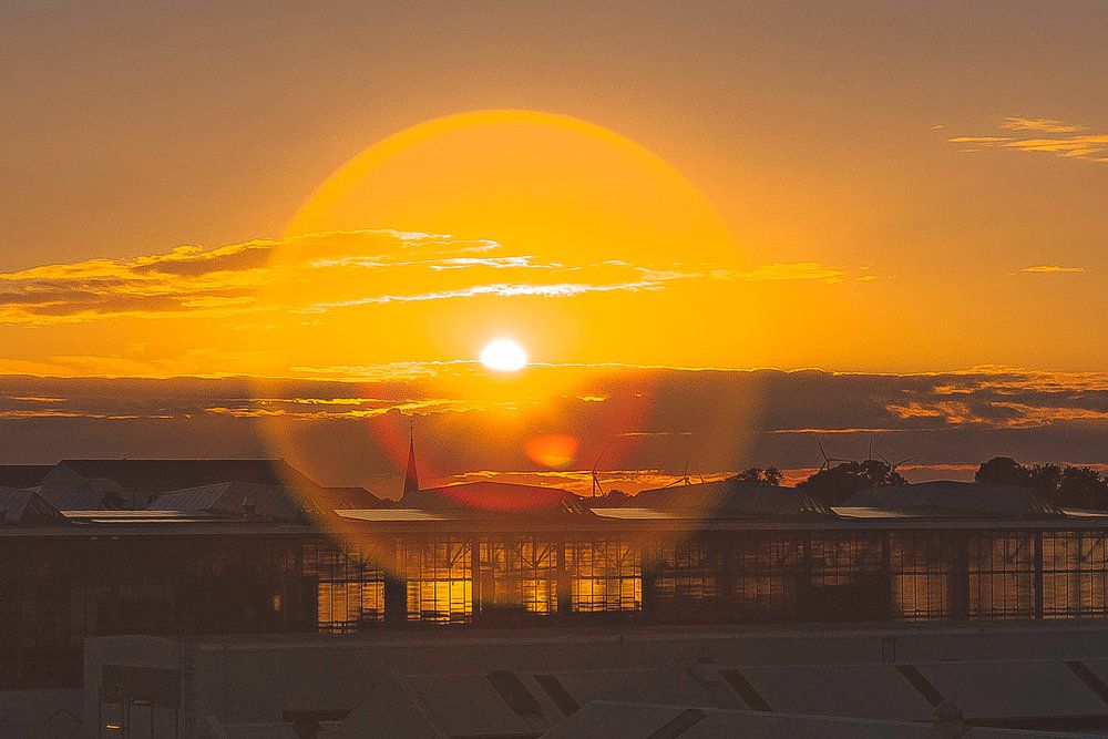 Skyline van Tilburg en mooie Zonsondergang gezien vanaf Doloris Rooftop.