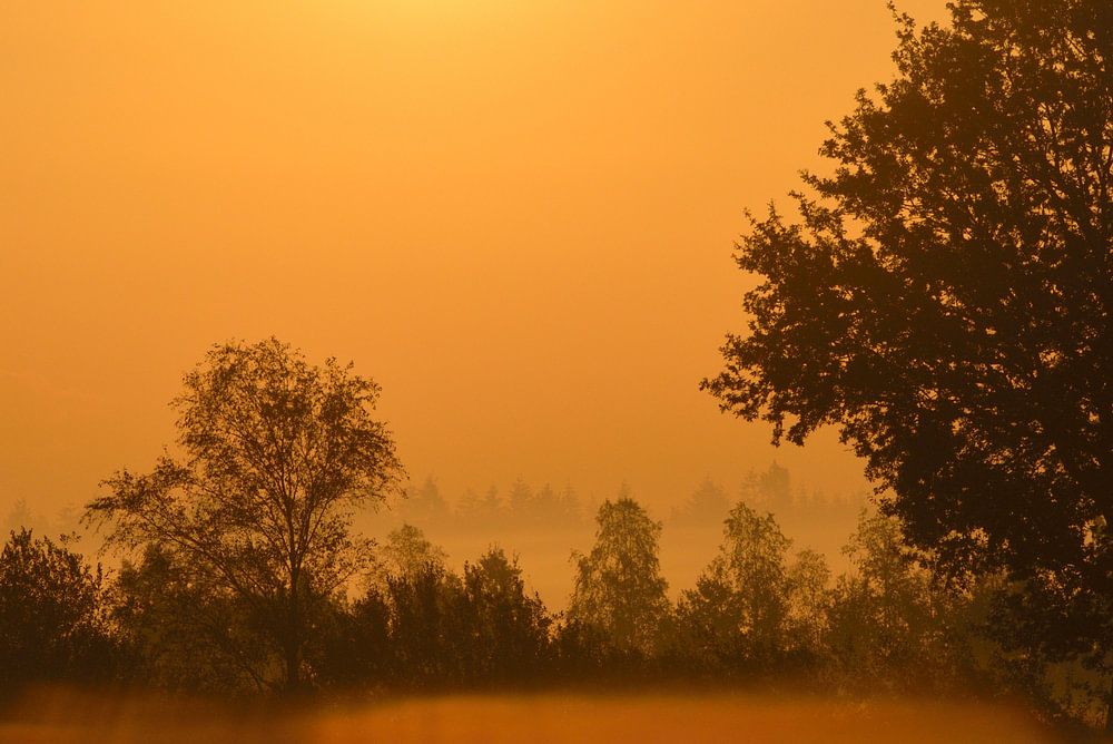 De zomerse zon komt vroeg op boven het landschap Twente