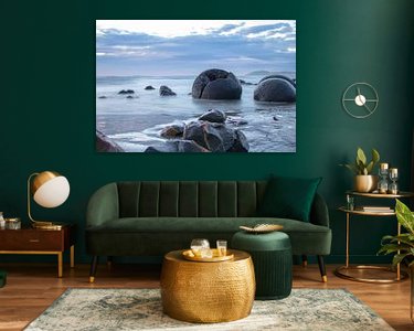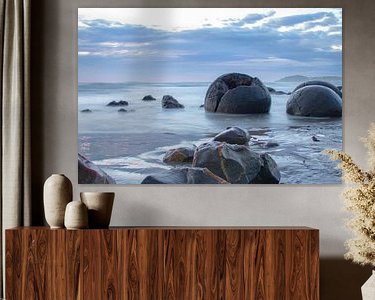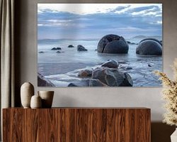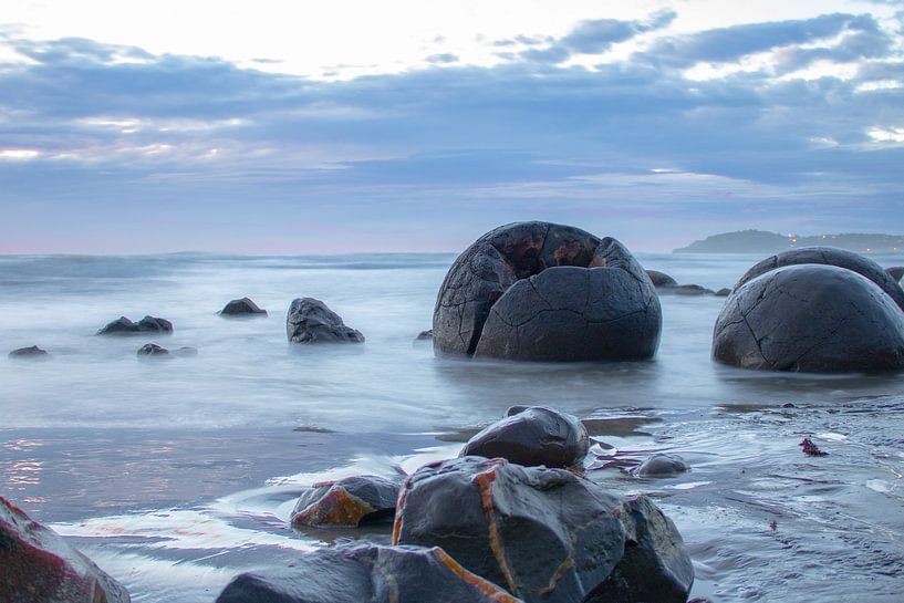 Zonsopgang bij Moeraki Boulders in Nieuw Zeeland