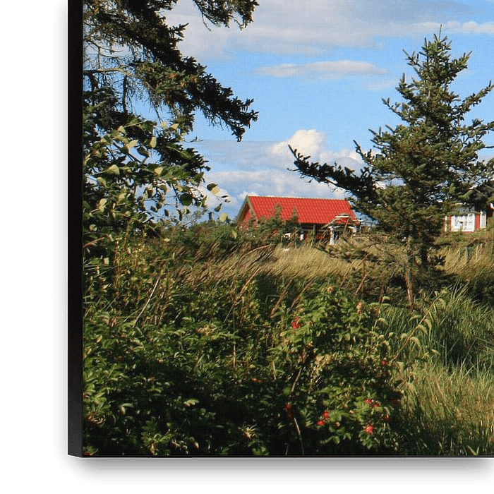 Buy this landscape artwork Zweedse huisjes by Margreet Frowijn on canvas, ArtFrame, poster and wallpaper, printed on demand in high quality.
