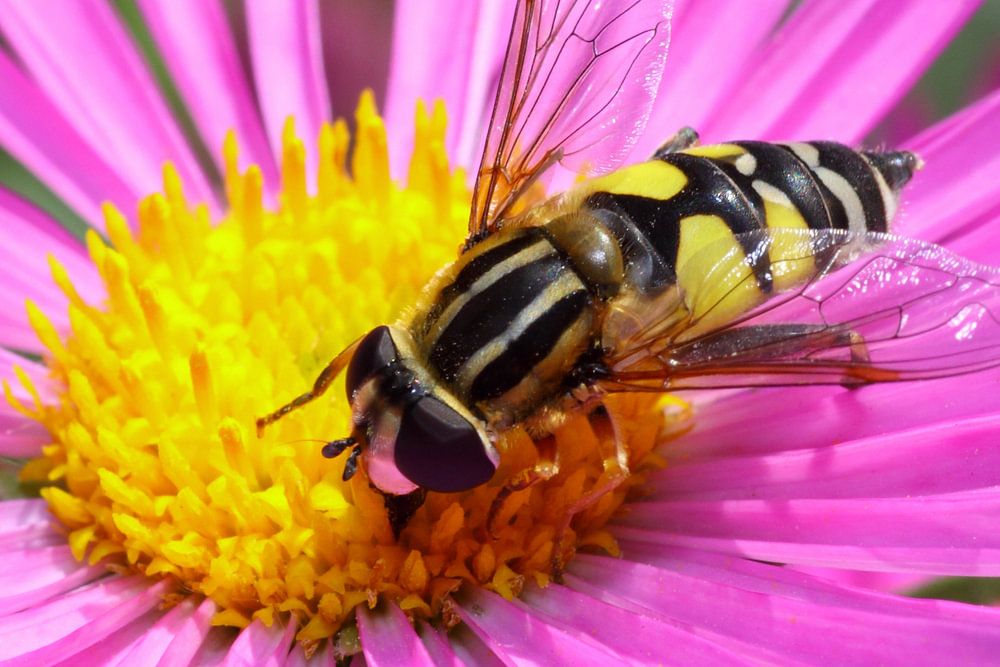 Zweefvliegen lijken sprekend op wespen. Ze zijn echter volkomen ongevaarlijk voor de mens. Er zijn vele soorten zweefvliegen en echt de moeite waard om ze stuk voor stuk van dichtbij te bekijken.