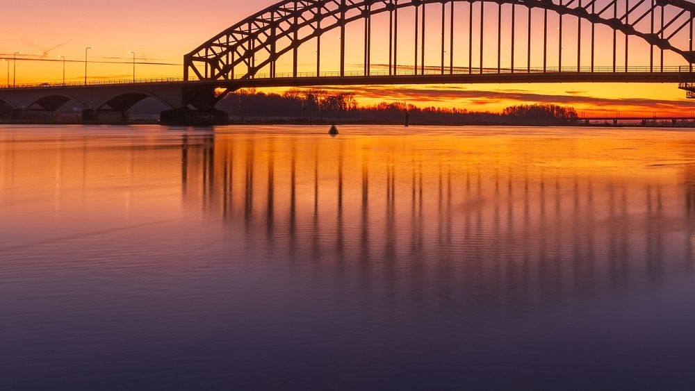 The high clouds and rising sun create popping colours in the sky. Add a beautiful iconic IJssel bridge and you have a picture for the eye.