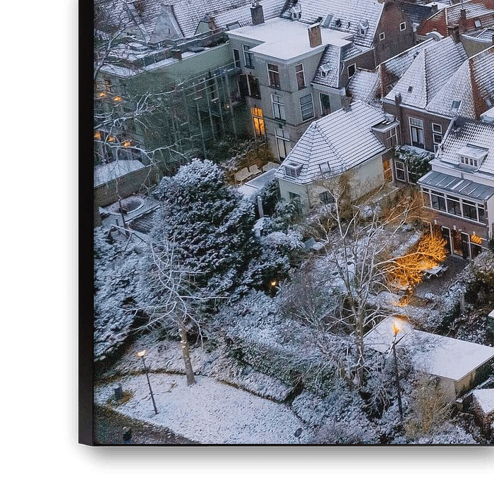 Zwolle Sassenpoort old gate during a cold winter morning with snow on the rooftops in the downtown district seen from above. The Sassenpoort was constructed in the 14th century, specifically between 1406 and 1409, and served as one of the main entrances to the fortified city of Zwolle. It was built as part of the city's defensive walls and was primarily used to control access into the city, as well as to protect its inhabitants from potential threats.The gate's name, "Sassenpoort," translates to "Saxon Gate" in English, which refers to the merchants from the Saxon region who would pass through this entrance into the city. The Sassenpoort was strategically positioned at a crucial location along the city's defensive walls, connecting the city center with the region to the east.Architecturally, the Sassenpoort is an impressive example of Gothic brickwork. It features a rectangular shape with a height of approximately 38 meters (124 feet) and a width of around 20 meters (66 feet). The gate is adorned with decorative elements, including spires, battlements, and turrets, which give it a distinctive and imposing appearance.
