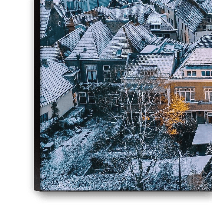 Zwolle Sassenpoort old gate during a cold winter morning with snow on the rooftops in the downtown district seen from above. The Sassenpoort was constructed in the 14th century, specifically between 1406 and 1409, and served as one of the main entrances to the fortified city of Zwolle. It was built as part of the city's defensive walls and was primarily used to control access into the city, as well as to protect its inhabitants from potential threats.The gate's name, "Sassenpoort," translates to "Saxon Gate" in English, which refers to the merchants from the Saxon region who would pass through this entrance into the city. The Sassenpoort was strategically positioned at a crucial location along the city's defensive walls, connecting the city center with the region to the east.Architecturally, the Sassenpoort is an impressive example of Gothic brickwork. It features a rectangular shape with a height of approximately 38 meters (124 feet) and a width of around 20 meters (66 feet). The gate is adorned with decorative elements, including spires, battlements, and turrets, which give it a distinctive and imposing appearance.